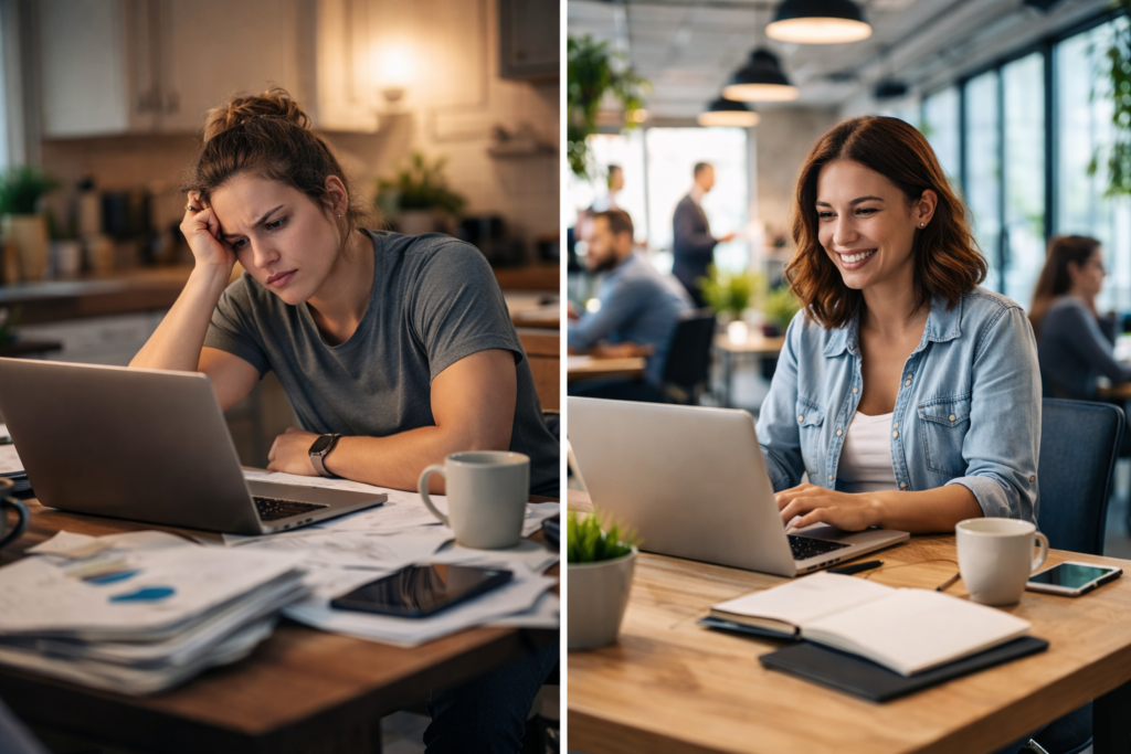 Ao analisarmos os pontos apresentados sobre a melhoria do desempenho profissional, comparando o home office ao Coworking, percebemos que o momento de sentar e executar
